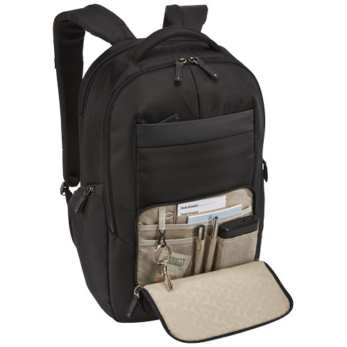 Posiada dużą główną komorę zapinaną na zamek z wyściełaną przegrodą na laptopa 15,6 cala i tablet 10,1 cala oraz zapinaną na zamek siateczkową kieszeń na kable i akcesoria. Jest wyposażony w przedni panel organizacyjny do przechowywania drobnych urządzeń elektronicznych, kabli, akcesoriów, wizytówek i kluczy. Zawiera rozszerzalne kieszenie boczne na butelkę z wodą lub zasilacz, wyściełane ramiączka, pikowany tylny panel z siateczki przepuszczającej powietrze, miękki uchwyt i prowadnice wózka. Gwarancja Case Logic: 25 lat.