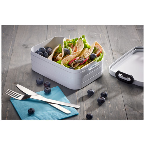 Pudełko na lunch z pierścieniem uszczelniającym, aby zawartość była świeża i smaczna. Może pomieścić do 4 kanapek. W zestawie przegródka. Pojemność 900 ml. Można myć w zmywarce. Nie zawiera BPA.