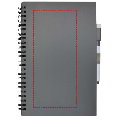 Ekologiczny notatnik zaprojektowany z myślą o zmniejszeniu zużycia papieru w celu ochrony środowiska. Po pewnym czasie robienia notatek, rysowania lub burzy mózgów, strony można wytrzeć gumką na markerze i użyć ich ponownie. Można go również czyścić zwykłą szmatką (brak w zestawie). Zawiera 40 kartek w połowie w kropki, a w połowie pustych oraz czarny marker do pisania.