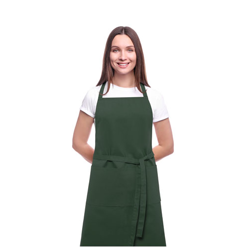 Fartuch zgodny z zasadami zrównoważonego rozwoju wykonany z bawełny organicznej o gramaturze 200 g/m² z certyfikatem GOTS. Posiada 2 przylegające kieszenie o łącznych wymiarach 45 x 20 cm oraz wiązanie z tyłu o długości 1 m. Długość paska na szyję: 55 cm.
