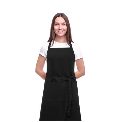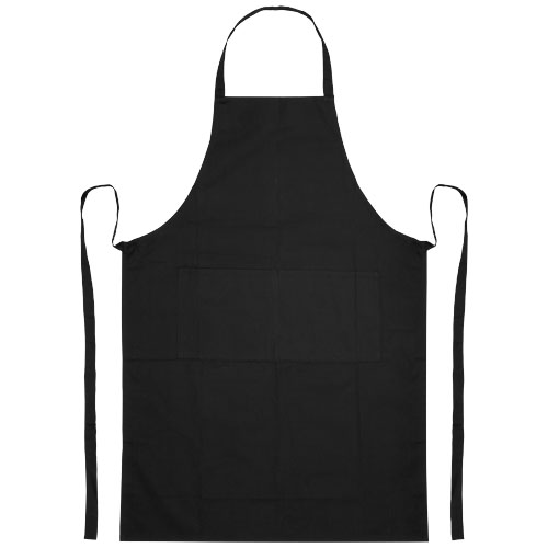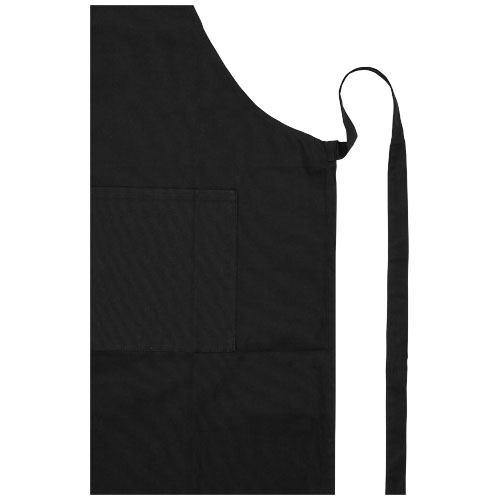 Fartuch zgodny z zasadami zrównoważonego rozwoju wykonany z bawełny organicznej o gramaturze 200 g/m² z certyfikatem GOTS. Posiada 2 przylegające kieszenie o łącznych wymiarach 45 x 20 cm oraz wiązanie z tyłu o długości 1 m. Długość paska na szyję: 55 cm.