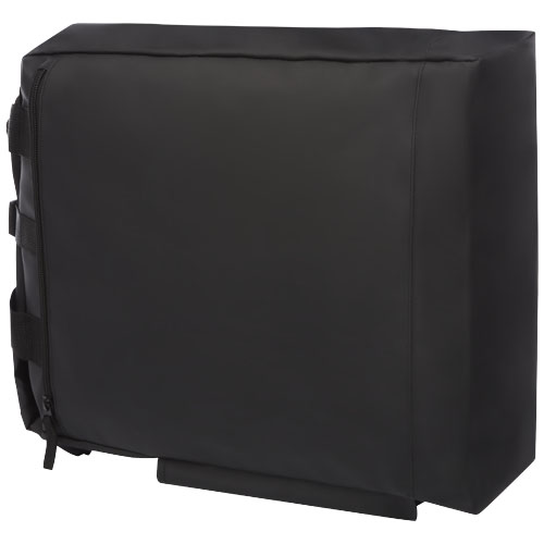 Wodoodporny plecak z wyściełaną przegrodą na laptopa, wyściełanymi, regulowanymi paskami na ramiona, główną komorą zapinaną na zamek błyskawiczny z rolowanym zamknięciem i dwoma uchwytami do przenoszenia.