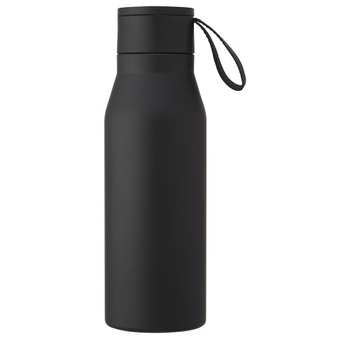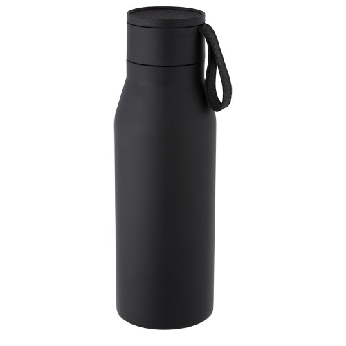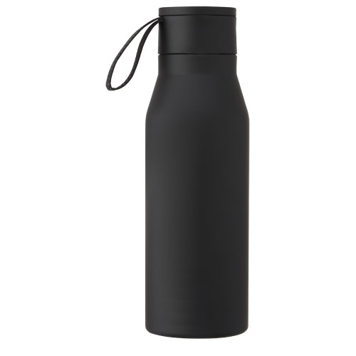 Ljungan Miedziana, izolowana próżniowo butelka ze stali nierdzewnej o pojemności 500 ml z paskiem ze skóry PU i pokrywką / Czarny