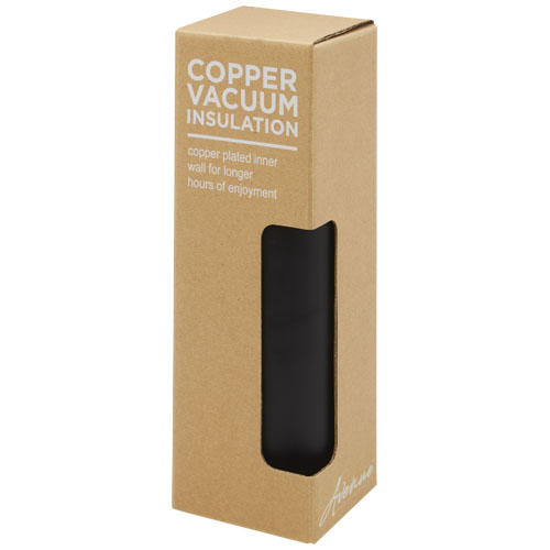 Miedziana butelka ze stali nierdzewnej z izolacją próżniową, o klasycznym i eleganckim wyglądzie. Posiada pasek ze skóry PU i ozdobę na pokrywie. Dzięki temu idealnie nadaje się do grawerowania laserowego, które uwydatni logo w srebrnym kolorze tworząc piękny efekt wizualny. Dzięki podwójnym miedzianym ściankom z stali nierdzewnej 18/8 z izolacją próżniową napoje pozostają gorące lub zimne przez kilka godzin. Przetestowany i zatwierdzony zgodnie z niemieckimi przepisami dotyczącymi bezpieczeństwa żywności (LFGB), oraz poddany testom na zawartość ftalanów zgodnie z przepisami REACH. Pojemność 500 ml. Zapakowany w kartonowe pudełko upominkowe wykonane z materiałów pochodzących z recyklingu.