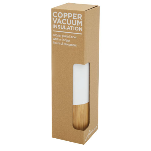 Torne miedziana, izolowana próżniowo butelka ze stali nierdzewnej o pojemności 540 ml z bambusową ścianką zewnętrzną / Biały