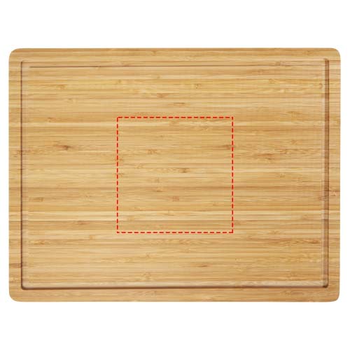 Bambusowa deska do krojenia steków z rowkiem na obwodzie, który zapobiega rozlewaniu się płynów po blacie. Deska do krojenia wykonana z bambusa, który jest pozyskiwany i produkowany zgodnie z zasadami zrównoważonego rozwoju.