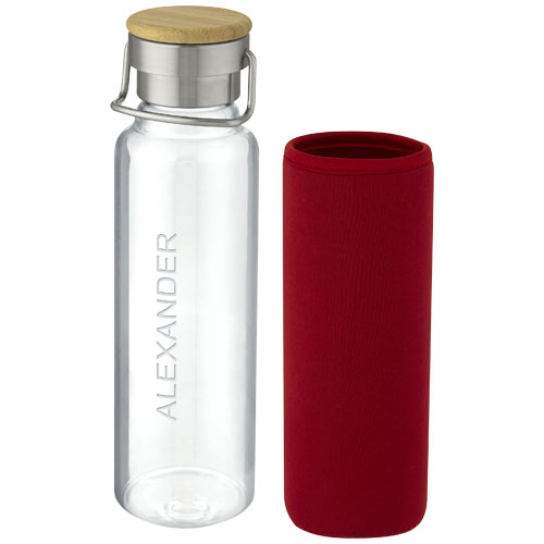 Szklana butelka Thor o pojemności 660 ml z neoprenowym pokrowcem / Czerwony