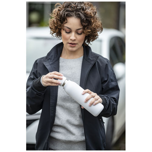 Butelka Marka posiada konstrukcję próżniową ze stali nierdzewnej z miedzianą izolacją, która utrzymuje ciepło lub zimno napojów przez kilka godzin. Izolowana konstrukcja ze stali nierdzewnej 18/8 zapobiega skraplaniu się wody na zewnątrz butelki, a modne wykończenie z lakieru proszkowego sprawia, że jest ona wyjątkowo trwała. Butelka posiada również zakręcaną, odporną na rozlanie pokrywkę oraz trwałą, wykonaną ze stopu cynku pętelkę na rękę. Wolna od BPA, przetestowana i zatwierdzona zgodnie z niemiecką ustawą o bezpieczeństwie żywności (LFGB). Sprawdzona i zatwierdzona pod kątem zawartości ftalanów zgodnie z przepisami REACH. Pasuje do większości standardowych uchwytów samochodowych. Pojemność 600 ml. Zaleca się mycie ręczne. Zapakowany w kartonowe pudełko upominkowe wykonane z materiałów pochodzących z recyklingu.