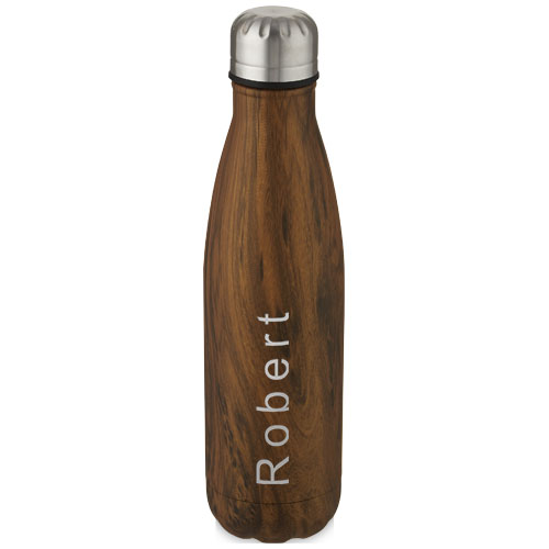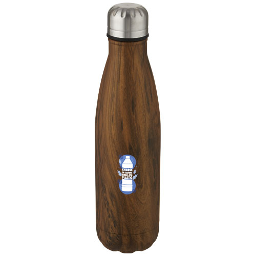 Izolowana próżniowo butelka Cove ze stali nierdzewnej o pojemności 500 ml z nadrukiem imitującym drewno / Drewno
