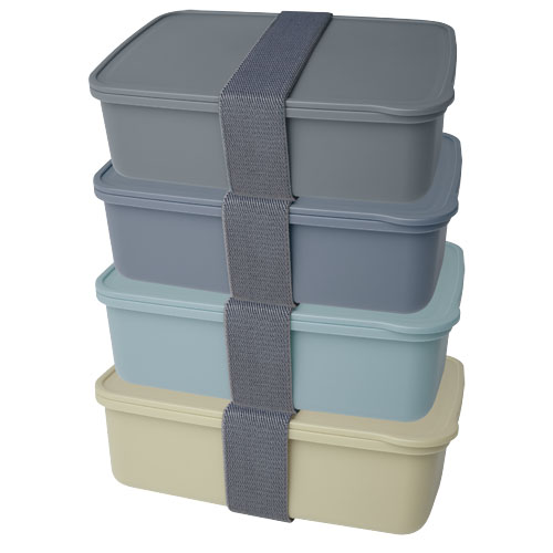 Pojemnik na lunch Dovi o pojemności 800 ml jest wykonany w 100% z tworzywa sztucznego pochodzącego z recyklingu, co czyni go trwałym i modnym wyborem. Posiada zamknięcie na gumkę, dzięki któremu pokrywka pozostaje bezpiecznie na swoim miejscu podczas podróży.