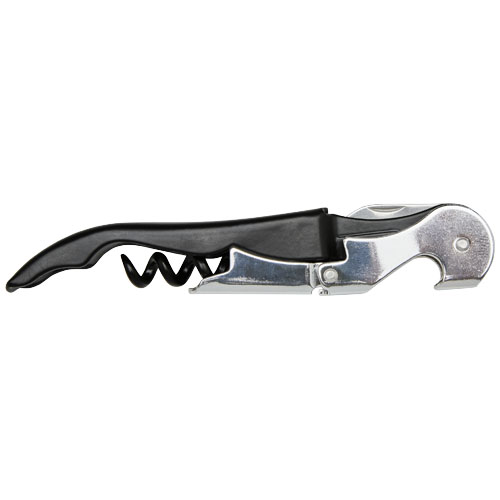 Nóż kelnerski ze stali nierdzewnej z kolorowym korpusem, wyposażony w korkociąg, przecinak do folii i otwieracz do butelek. Dzięki dwustopniowej konstrukcji można łatwo wyjąć korek z butelki.
