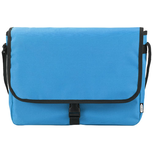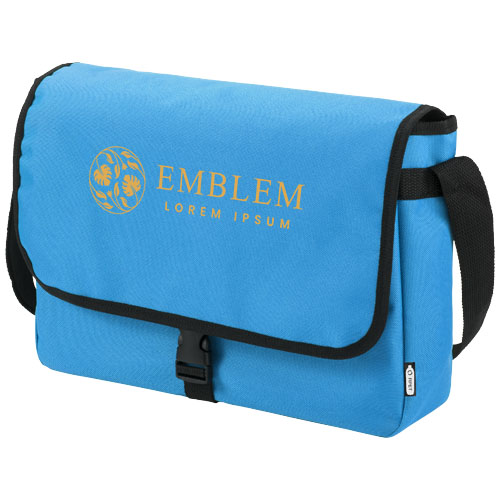 Torba na ramię wykonana z plastiku PET z recyklingu z regulowanym paskiem na ramię. Wyposażona w główną komorę zamykaną klapką i zapięciem na sprzączkę.