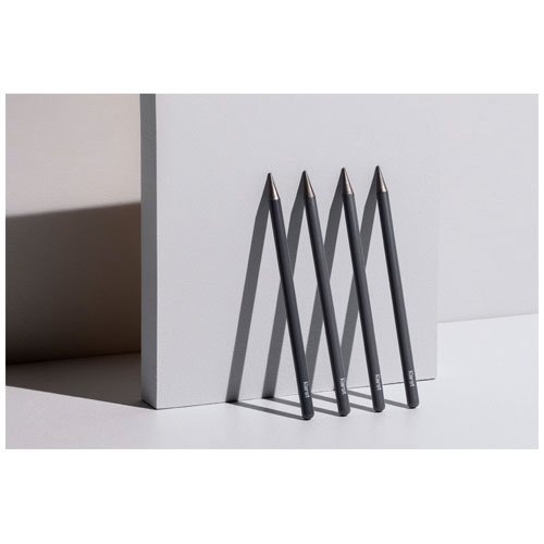 Zestaw 5 ołówków grafitowych, które zawierają 5 razy więcej grafitu. Bezdrzewny korpus można naostrzyć, aby uzyskać wyraźne linie lub stępić, aby uzyskać ekspresyjne pociągnięcia lub subtelne cieniowanie. Bezdrzewna konstrukcja pozwala na wszechstronność przy jednoczesnym oszczędzeniu bałaganu związanego z tradycyjnymi wiórami drzewnymi. Solidna waga tych ołówków sprawia, że doskonale leżą w dłoni, niezależnie od tego, czy piszesz, bazgrzesz, szkicujesz czy rysujesz.