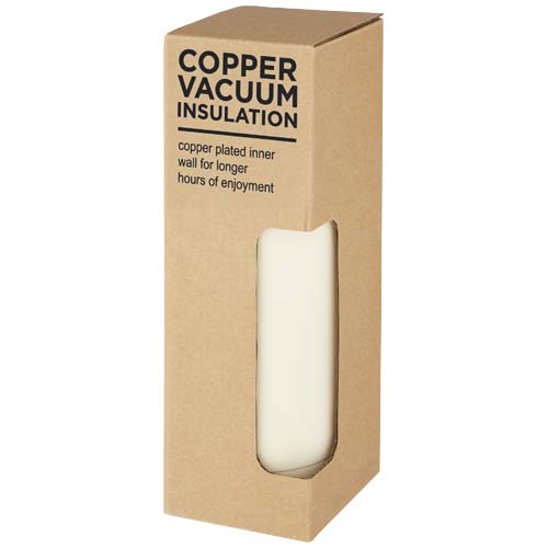 Miedziana, izolowana próżniowo butelka ze stali nierdzewnej z prostym wzornictwem. Izolowana konstrukcja ze stali nierdzewnej 18/8 zapobiega skraplaniu się wody wewnątrz butelki, a modne wykończenie z matowego lakieru proszkowego sprawia, że jest ona wyjątkowo trwała. Wolne od BPA, przetestowana i zatwierdzone zgodnie z niemiecką ustawą o bezpieczeństwie żywności (LFGB). Sprawdzona i zatwierdzona pod kątem zawartości ftalanów zgodnie z przepisami REACH. Pojemność 500 ml. Zaleca się mycie ręczne. Zapakowany w kartonowe pudełko upominkowe wykonane z materiałów pochodzących z recyklingu.