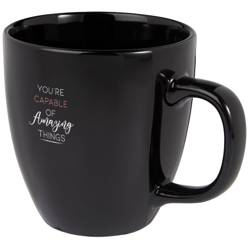 Ceramiczny kubek Moni ma modne połyskliwe wykończenie zapewniające elegancki wygląd. Posiada duży uchwyt, który zapewnia wygodny i solidny uchwyt. Kubek jest wystarczająco wszechstronny do użytku zarówno z gorącymi, jak i zimnymi napojami, co pozwala cieszyć się kawą, herbatą, zupą i nie tylko. Pojemność 430 ml. Wszystkie metody nadruku nadają się do mycia w zmywarce. Zapakowany w kartonowe pudełko upominkowe wykonane z materiałów pochodzących z recyklingu.