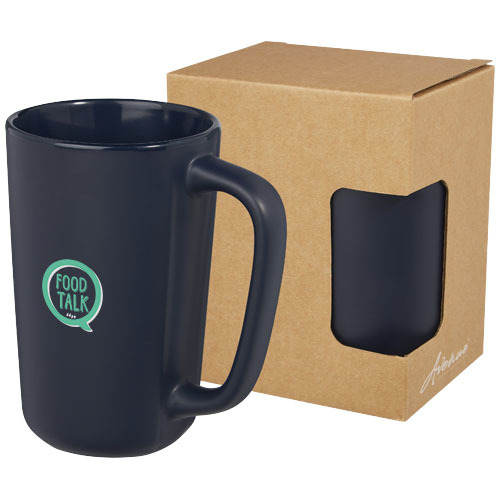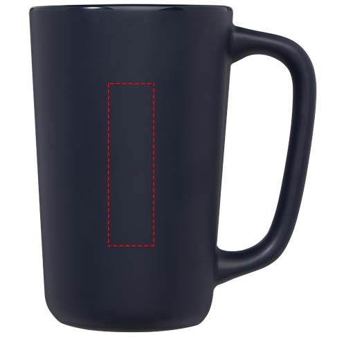Duży współczesny kubek ceramiczny z matowym wykończeniem na zewnątrz. Kubek Perk ma dużą powierzchnię, idealną do maksymalnej ekspozycji logo. Wszystkie metody nadruku nadają się do mycia w zmywarce. Pojemność 480 ml. Zapakowany w kartonowe pudełko upominkowe wykonane z materiałów pochodzących z recyklingu.