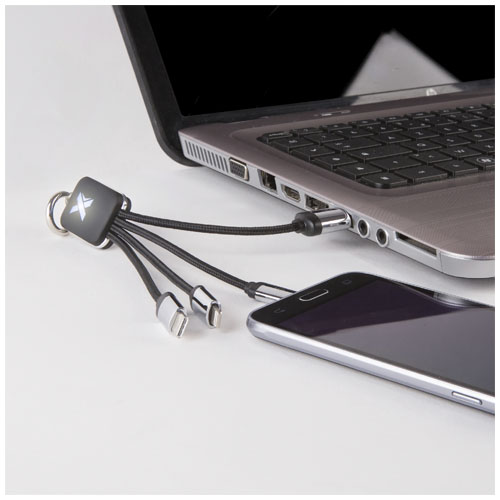 Kabel z podświetlonym logo 3w1 z brelokiem - SCX.design C15 / Czarny