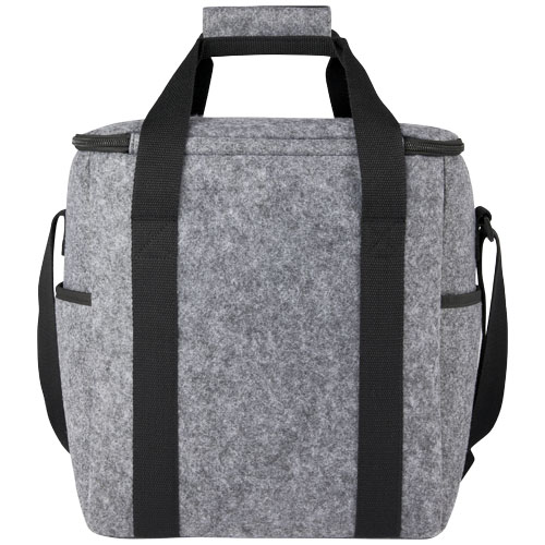 Duża torba termoizolacyjna wykonana z wysokiej jakości miękkiego i wytrzymałego filcu z recyklingu posiadającego certyfikat GRS. Posiada dużą komorę główną (na sześć 1,5-litrowych butelek) wyłożoną bezpieczną dla żywności i wyjątkowo grubą izolacją termiczną PEVA o wysokiej gęstości, która utrzymuje niską temperaturę napojów i przekąsek przez wiele godzin. Górne zapięcie na suwak, przednia kieszeń i dwie boczne kieszenie zapewniają dodatkową przestrzeń do przechowywania. Regulowane długie bawełniane szelki (55 x 3,8 cm) i 2 tkane bawełniane uchwyty (25 x 3,8 cm) z górnym zapięciem na rzep. Łatwy do czyszczenia. Pojemność: 21 litrów.