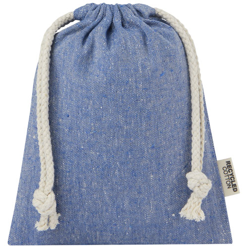 Pheebs torba na prezent z bawełny z recyklingu o gramaturze 150 g/m² i z certyfikatem GRS, mała o pojemności 0,5 l / Niebieski melanż