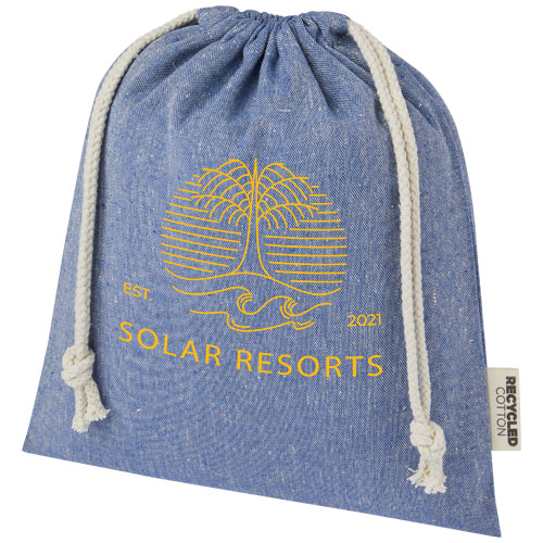 Torba upominkowa wykonana z bawełny z recyklingu z certyfikatem GRS z zamknięciem na sznurek bawełniany. Idealna do prezentów lub przechowywania przedmiotów. Wymiary: 25 x 30 cm.