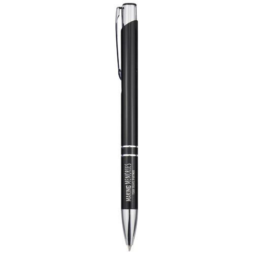 Długopis wykonany z aluminium z recyklingu z lakierowanym wykończeniem, połyskiem i wyrazistymi chromowanymi detalami. Aluminium z recyklingu wymaga mniej energii niż produkcja aluminium z surowców, co sprawia, że jest bardziej ekologiczne. Ogranicza również ilość odpadów na wysypiskach śmieci i pomaga chronić zasoby naturalne w celu zmniejszenia emisji gazów cieplarnianych. Czarny tusz. Żywotność: 600 metrów.