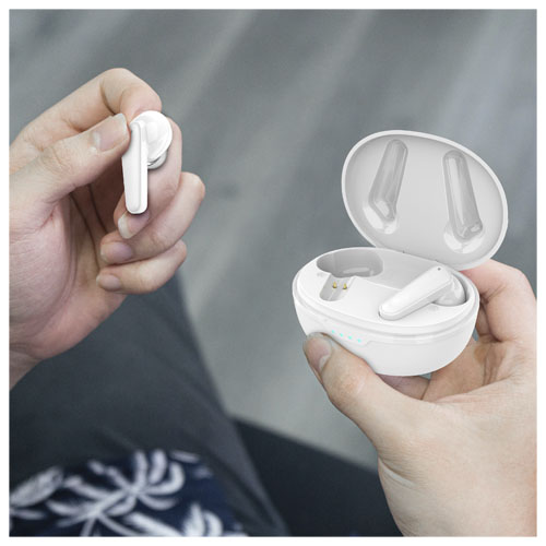 Słuchawki douszne z technologią ENC i ANC, która redukuje szumy otoczenia, dzięki czemu rozmówca jest wyraźnie słyszany podczas rozmów (ENC), a muzyka z podłączonego urządzenia (ANC). Dzięki wydajnemu akumulatorowi słuchawki zapewniają do 7 godzin pracy na jednym ładowaniu. Czas ładowania słuchawek dousznych: 1,5 godziny. W pełni naładowane etui służące do ładowania może naładować słuchawki do 3 razy.