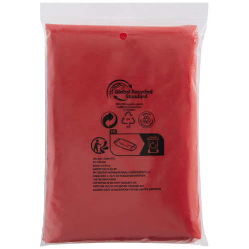 Mayan jednorazowe poncho przeciwdeszczowe z recyklingu z certyfikatem GRS, z pokrowcem do przechowywania / Czerwony