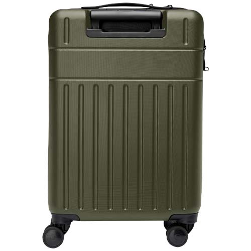 Twarda walizka na kółkach Rover o wysokości 51 cm, wyprodukowana z odpornych na uderzenia tworzyw sztucznych pochodzących z recyklingu i wyściółki RPET to produkt zarówno wysokiej jakości, jak i przyjazny dla środowiska. Posiada aluminiową ramę z podwójnymi rurkami, 4-kołowy mechanizm obrotowy 360 stopni, zintegrowany zamek szyfrowy TSA, wygodny uchwyt zapewniający komfort i wewnętrzne przegródki organizacyjne. Może być przewożona jako bagaż podręczny w większości głównych linii lotniczych. Walizka posiada certyfikat GRS, łącznie z nadrukiem, co sprawia, że jest wyborem bardziej przyjaznym dla środowiska.