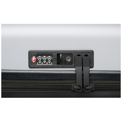 Twarda walizka na kółkach Rover o wysokości 51 cm, wyprodukowana z odpornych na uderzenia tworzyw sztucznych pochodzących z recyklingu i wyściółki RPET to produkt zarówno wysokiej jakości, jak i przyjazny dla środowiska. Posiada aluminiową ramę z podwójnymi rurkami, 4-kołowy mechanizm obrotowy 360 stopni, zintegrowany zamek szyfrowy TSA, wygodny uchwyt zapewniający komfort i wewnętrzne przegródki organizacyjne. Może być przewożona jako bagaż podręczny w większości głównych linii lotniczych. Walizka posiada certyfikat GRS, łącznie z nadrukiem, co sprawia, że jest wyborem bardziej przyjaznym dla środowiska.