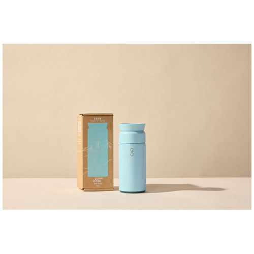 Ocean Bottle termos o pojemności 350 ml to doskonały wybór do przechowywania ciepłych napojów w podróży. Termos zawiera przetworzoną stal nierdzewną i przetworzony plastik z oceanu. Jeden termos odpowiada za zebranie 1000 plastikowych butelek i poprawia warunki życia społeczności przybrzeżnych. Termos jest wyposażony w inteligentny chip NFC, który umożliwia zbieranie większej ilości plastiku przy każdym napełnieniu. Innowacyjna pokrywka 360 umożliwia cyrkulację aromatów, a podwójna izolacja termiczna z przetworzonej stali nierdzewnej utrzymuje temperaturę napojów nawet przez sześć godzin.