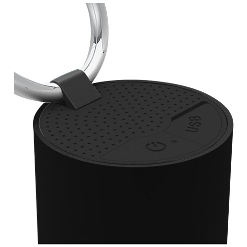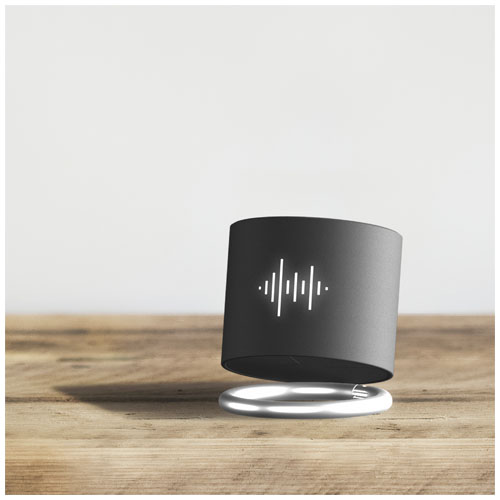 Bezprzewodowy głośnik Bluetooth® o mocy 3W z podświetlanym logo oraz podwójnym wyjściem dźwięku dla niezrównanej jakości brzmienia jak na głośnik tego rozmiaru. Głośnik można odchylić, aby skierować dźwięk w dowolnym kierunku. Posiada wbudowany mikrofon i funkcję połączeń konferencyjnych. Pojemność: Bateria o pojemności 500 mAh - 3,7 V. Częstotliwość: 50 Hz - 20 KHz. Moc dźwięku: 1 x 3 W. Impedancja: 4 Ω. Bluetooth® 4.2. Waga netto: 100 gramów. Wymiary: ∅ 50 mm x 45 mm. W zestawie znajduje się pudełko upominkowe z magnetycznym zamknięciem wykonane z papieru z recyklingu.