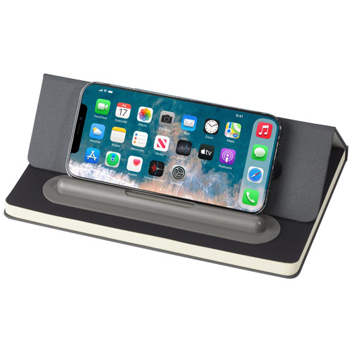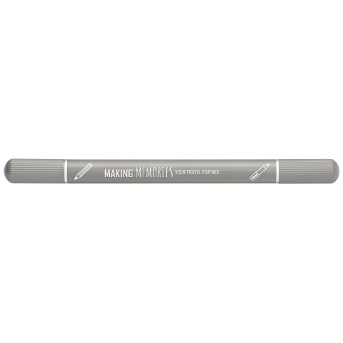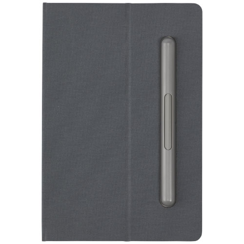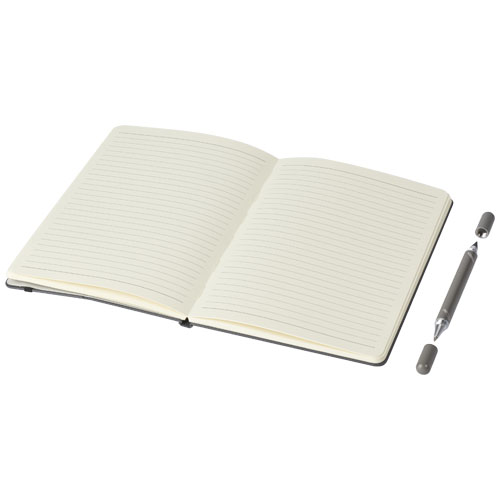 Skribo zestaw z notatnikiem i długopisem jest częściowo wykonany z poużytkowego poliestru pochodzącego z recyklingu, co czyni go bardziej zrównoważonym wyborem, ponieważ pomaga zmniejszyć zużycie pierwotnego surowca. Zawiera długopis z czarnym tuszem i 80 kremowych kartek w linie z papieru z recyklingu o gramaturze 80 g/m2, pochodzącego ze zrównoważonych źródeł. Długość linii pisania długopisu wynosi 1000 metrów.