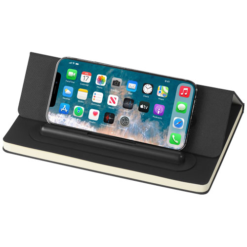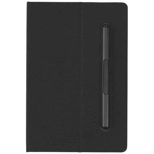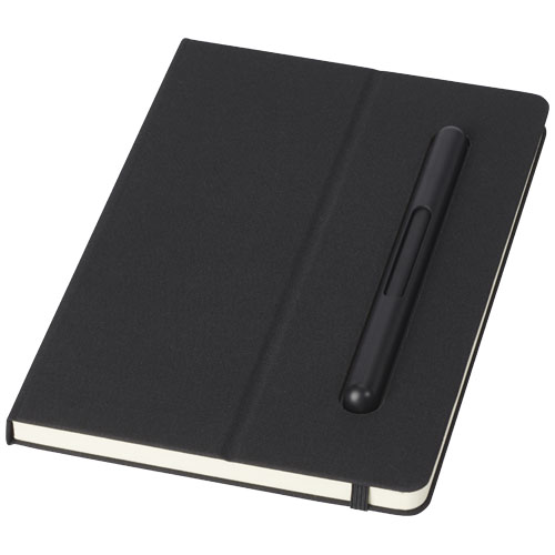 Skribo zestaw z notatnikiem i długopisem jest częściowo wykonany z poużytkowego poliestru pochodzącego z recyklingu, co czyni go bardziej zrównoważonym wyborem, ponieważ pomaga zmniejszyć zużycie pierwotnego surowca. Zawiera długopis z czarnym tuszem i 80 kremowych kartek w linie z papieru z recyklingu o gramaturze 80 g/m2, pochodzącego ze zrównoważonych źródeł. Długość linii pisania długopisu wynosi 1000 metrów.