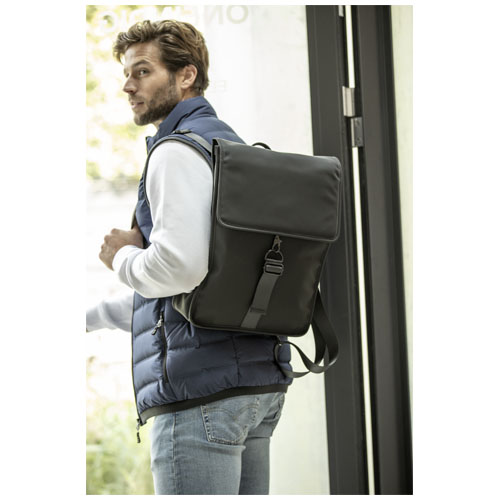 Turner plecak zaprojektowany z bardzo trwałych i przyjaznych dla środowiska materiałów. Zewnętrzna część wykonana jest z poliuretanu pochodzącego w 51% z recyklingu z certyfikatem GRS, a podszewka z RPET w 100% pochodzącego z recyklingu z certyfikatem GRS. Plecak posiada dedykowaną wyściełaną przegrodę na laptopa o średnicy 15,6 cali, wewnętrzną taśmę do przechowywania butelki z wodą oraz zapinaną na zamek kieszeń na mniejsze przedmioty. Główną komorę można otwierać i zamykać za pomocą klamry. Ten plecak został wykonany z myślą o trwałości, a dzięki klasycznemu wzornictwu i wytrzymałym materiałom stanie się Twoim ulubionym wyborem.