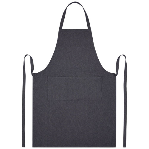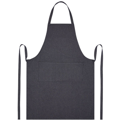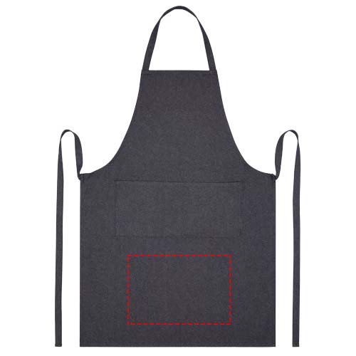 Nima fartuch o gramaturze 320 g/m² wykonany w 70% z bawełny pochodzącej z recyklingu i w 30% z poliestru pochodzącego z recyklingu, dzięki czemu jest gruby, wytrzymały i wygodny w noszeniu. Posiada 2 przylegające do siebie kieszenie (każda o wymiarach 22 x 20 cm) i wiązanie z tyłu o długości 1 metra. Do fartucha dołączony jest również znacznik Aware™. Ta innowacyjna funkcja pozwala użytkownikom prześledzić za pomocą kodu QR pochodzenie produktu i pokonaną przez niego drogę, zwiększając przejrzystość łańcucha dostaw i wspierając silniejszy związek między produktem a jego procesem produkcyjnym.
