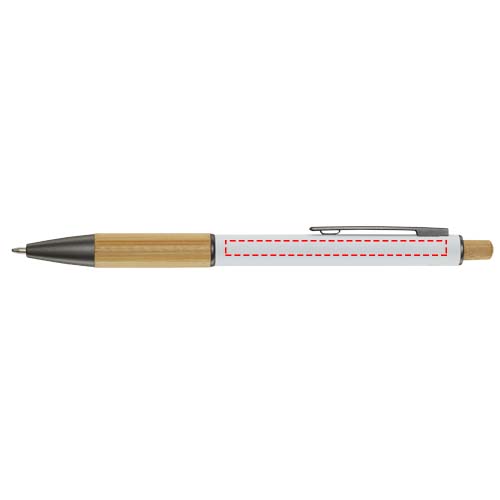 Darius długopis wykonany z aluminium pochodzącego z recyklingu, którego produkcja wymaga mniej energii niż w przypadku aluminium wyprodukowanego z surowców. Ogranicza również ilość odpadów na wysypiskach śmieci i pomaga chronić zasoby naturalne w celu zmniejszenia emisji gazów cieplarnianych. Przycisk i dolna część korpusu wykonane są z bambusa. Kolor tuszu: Niebieski. Żywotność: 800 metrów. Rozmiar stalówki: 1,00 mm.