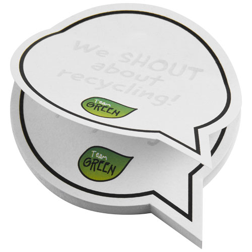 Wyróżnij się za pomocą samoprzylepnych karteczek Sticky-Mate® w kształcie dymka. Zawiera 50 arkuszy papieru z recyklingu o gramaturze 80 g/m2. Możliwość pełnego, kolorowego nadruku na każdym arkuszu.