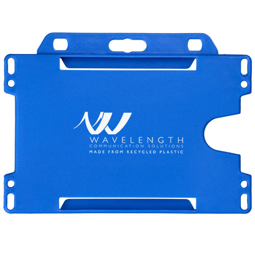 Etui na karty w orientacji poziomej wykonane z tworzyw sztucznych pochodzących z recyklingu. Idealne na wystawy, wydarzenia networkingowe oraz w miejscach pracy. Nadaje się do standardowych wizytówek i wejściówek wielkości karty kredytowej. Ze względu na charakter tworzyw sztucznych pochodzących z recyklingu odcienie kolorów mogą się nieznacznie różnić i mogą występować kolorowe plamki. Wyprodukowano w Wielkiej Brytanii.