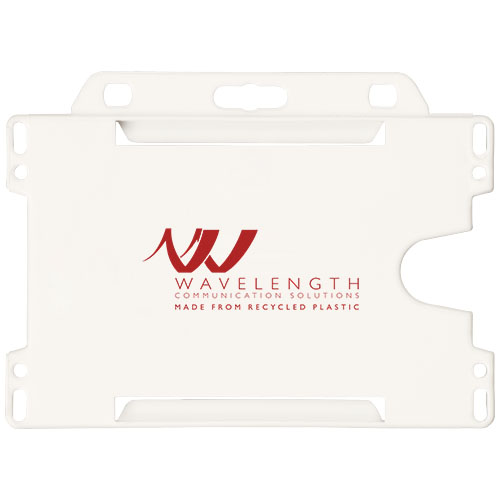 Etui na karty w orientacji poziomej wykonane z tworzyw sztucznych pochodzących z recyklingu. Idealne na wystawy, wydarzenia networkingowe oraz w miejscach pracy. Nadaje się do standardowych wizytówek i wejściówek wielkości karty kredytowej. Ze względu na charakter tworzyw sztucznych pochodzących z recyklingu odcienie kolorów mogą się nieznacznie różnić i mogą występować kolorowe plamki. Wyprodukowano w Wielkiej Brytanii.