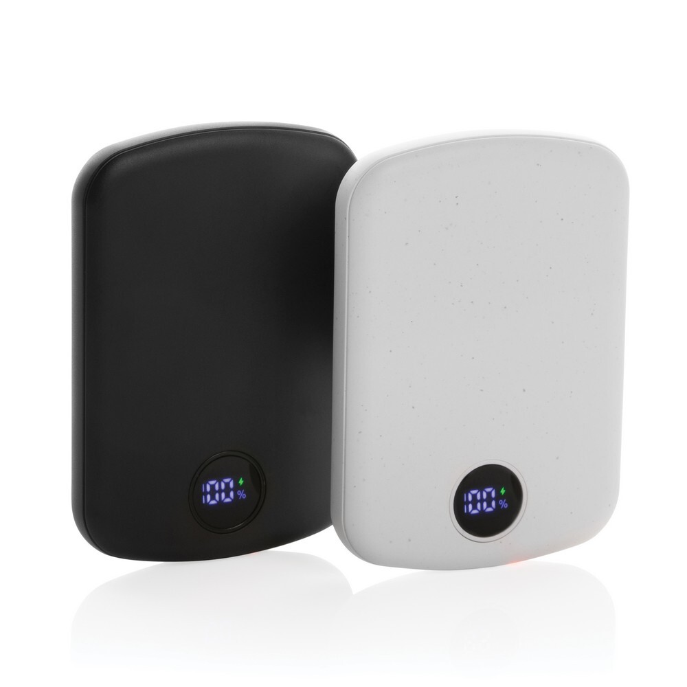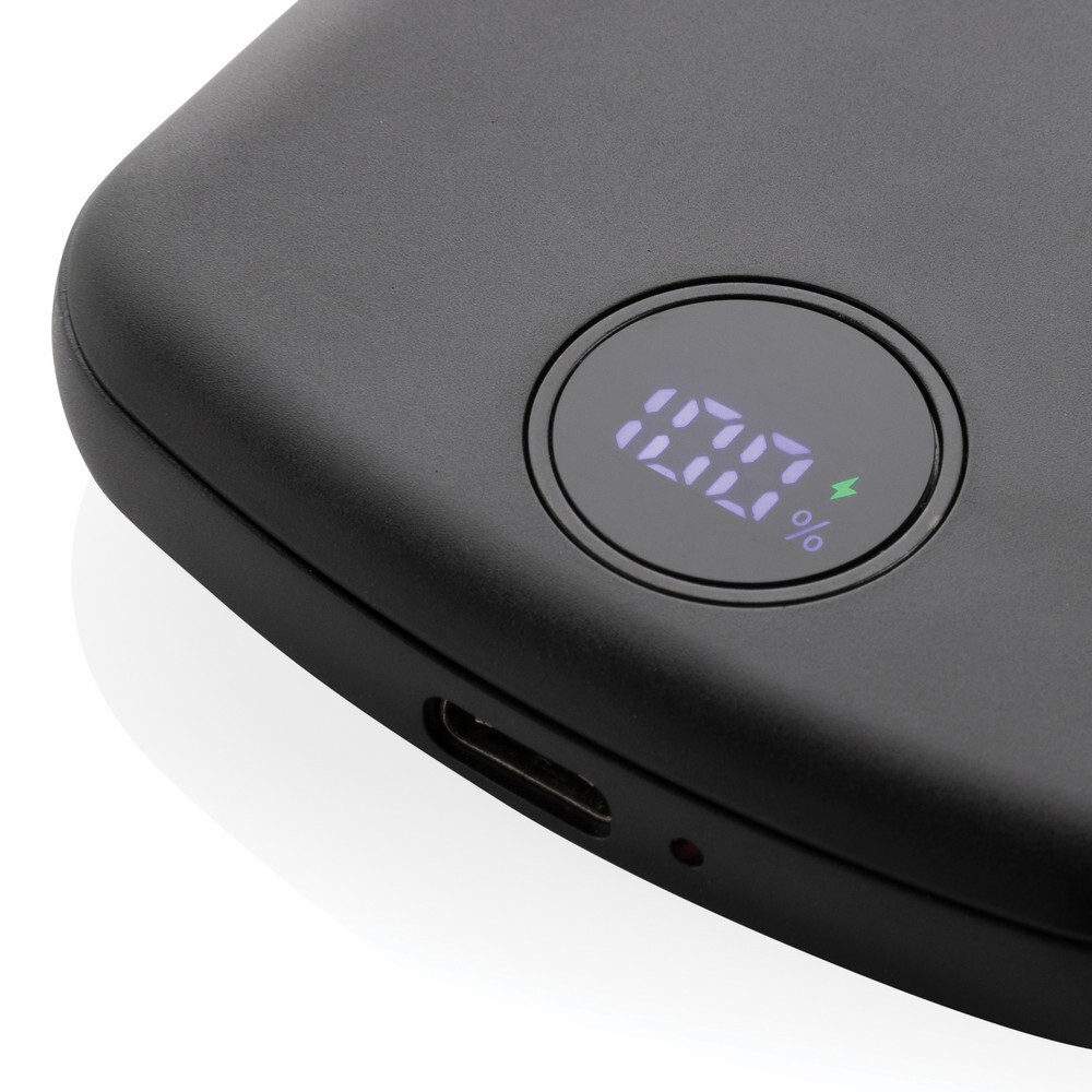 Power bank 5000 mAh, magnetyczna ładowarka bezprzewodowa 15W, cyfrowy wyświetlacz poziomu naładowania, wykonany z ABS z recyklingu, całkowita zawartość materiałów z recyklingu obliczona na podstawie wagi całkowitej przedmiotu: 21%, wejście USB typu C 5-12V/1.5-3A, wyjście USB typu C 5-12V/1.67-2.4A, kabel w komplecie, w pudełku z certyfikatem FSC® mix