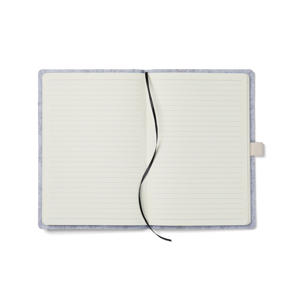 Notatnik A5 (80 kartek w linie o gramaturze 70 g/m2), wykonany z filcu z recyklingu, wnętrze z papieru makulaturowego