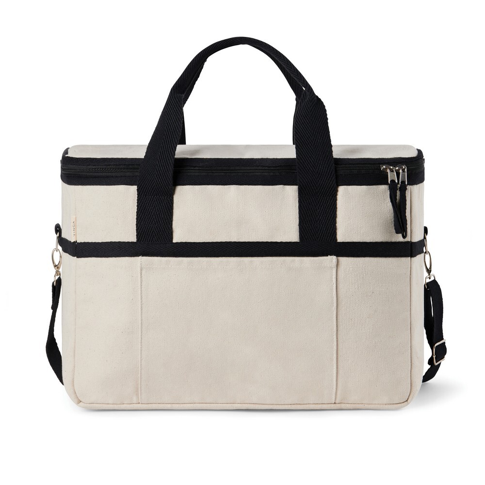 Koszyk termoizolacyjny, regulowany pasek na ramię, uchwyty, wykonany z materiału pochodzącego z recyklingu o gramaturze 500 gsm (70% bawełny z recyklingu, 30% poliestru z recyklingu), posiada znacznik AWARE™, który gwarantuje, że wykorzystane materiały pochodzą z recyklingu, 2% wpływów z każdego sprzedanego produktu z kolekcji Impact jest przekazywane na rzecz Water.org