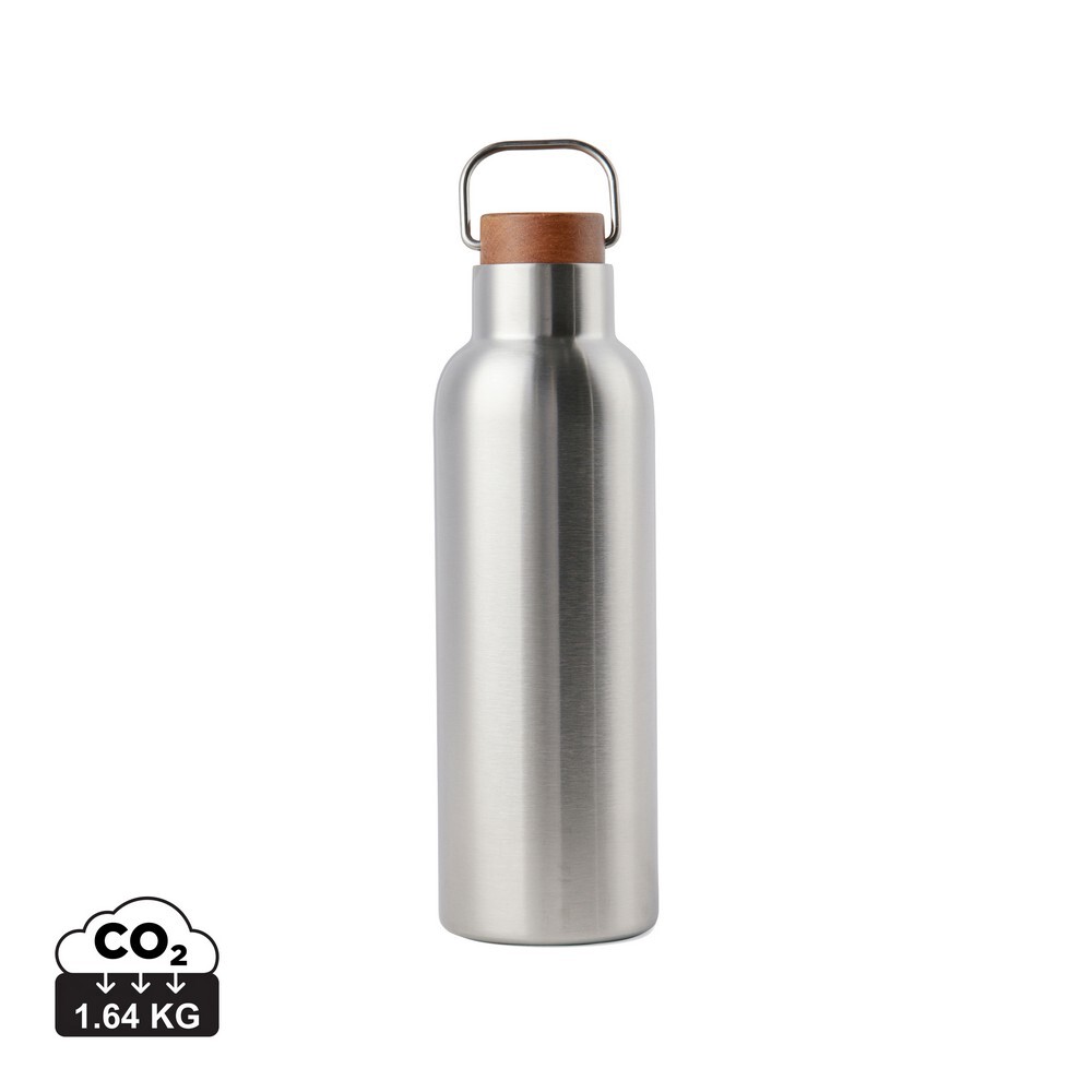 Butelka termiczna 800 ml, podwójne ścianki ze stali nierdzewnej z próżnią pomiędzy, wykonana ze stali nierdzewnej z recyklingu z certyfikatem RCS, drewniane wieczko z uchwytem, całkowita zawartość materiałów z recyklingu obliczona na podstawie wagi całkowitej przedmiotu: 79%, wyłącznie mycie ręczne, w pudełku z papieru kraftowego z certyfikatem FSC®