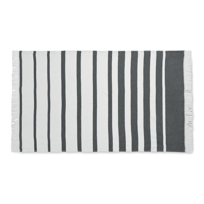 Ręcznik hammam z materiałów z recyklingu, 70% bawełna z recyklingu, 30% poliester SEAQUAL® YARN z recyklingu. 300 gr/m² 100x170 cm. SEAQUAL INITIATIVE współpracuje z organizacjami zajmującymi się oczyszczaniem oceanów na całym świecie, aby nadać wartość odzyskiwanym odpadom. Wyprodukowano w UE.