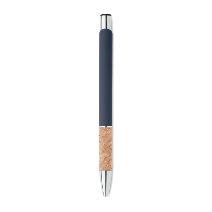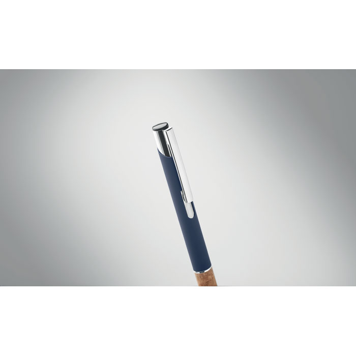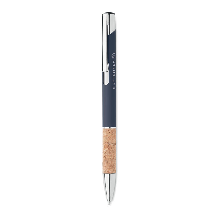 Przyciskany długopis z aluminium z korkowym uchwytem. Niebieski tusz.