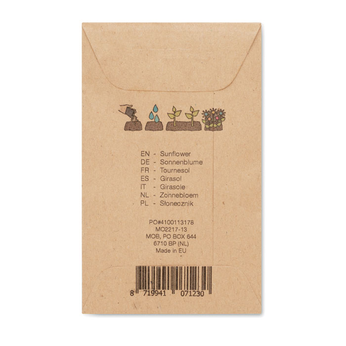 Nasiona słonecznika w papierowej kopercie. Wyprodukowano w EU.
