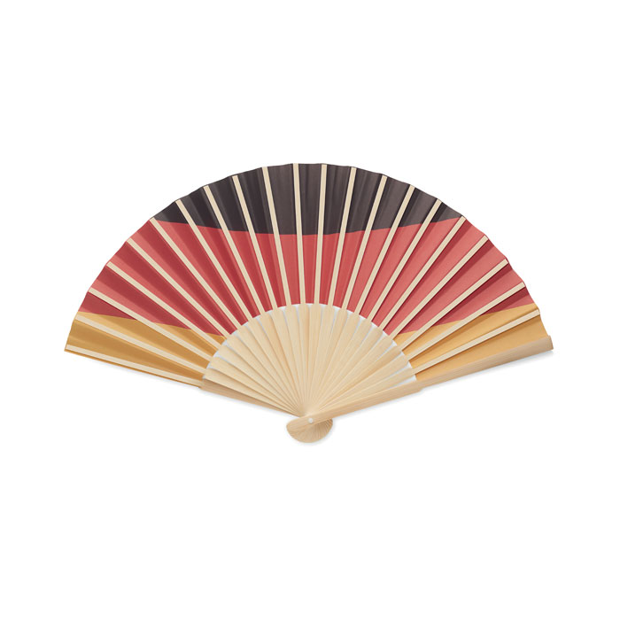 Wykonany z bambusa ręczny wachlarz z flagą na papierowym materiale.