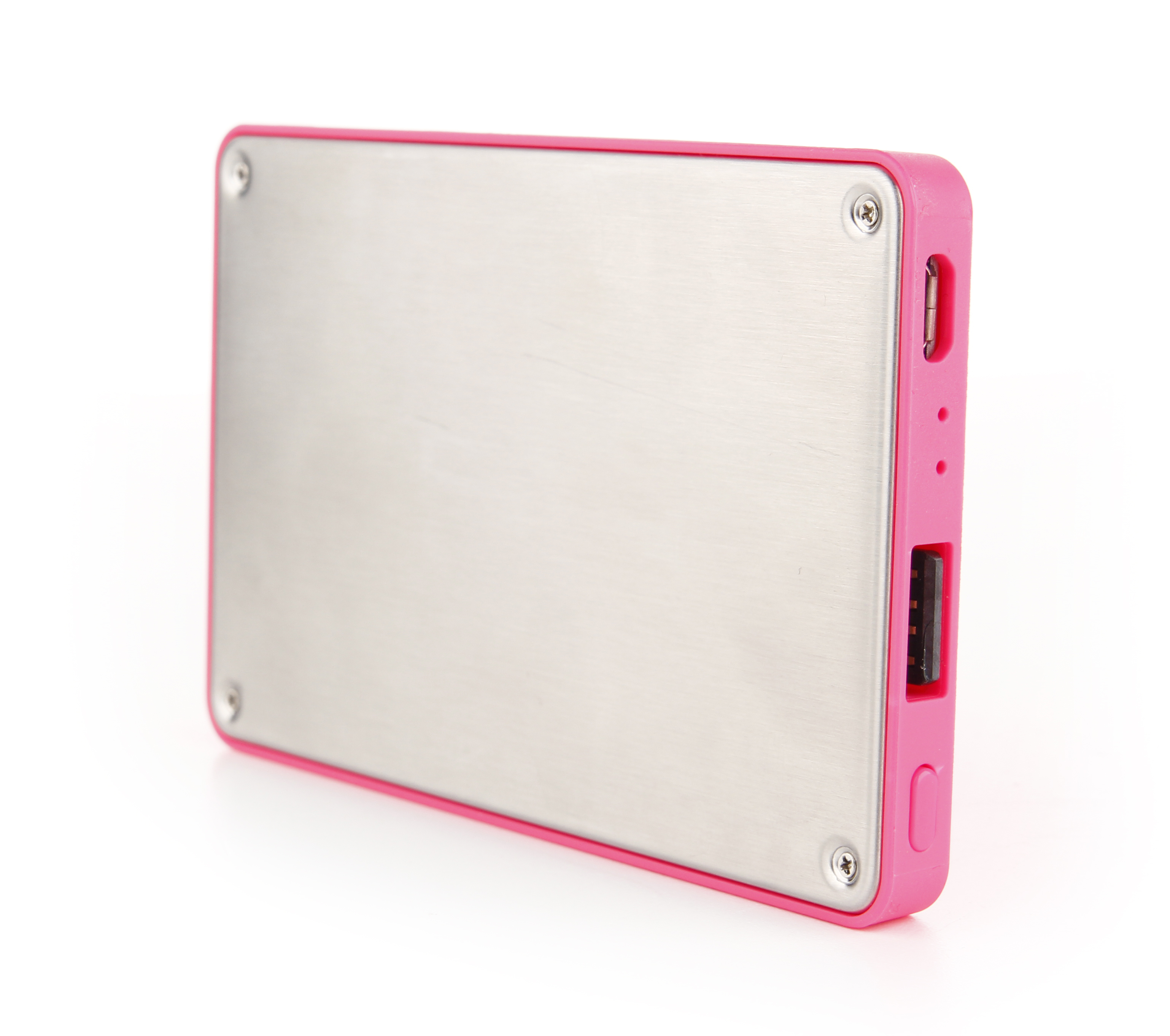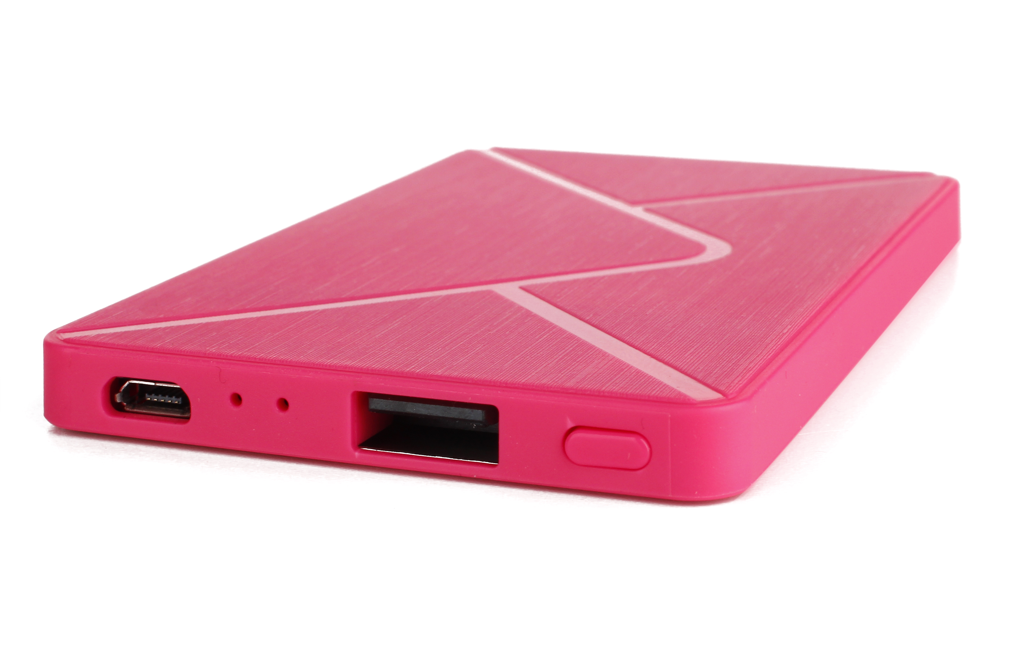 Mały, kompatkowy power bank w kształcie koperty o pojemności 2500mAh. Tył stanowi aluminiowa blaszka. Do zestawu dołączony jest kabelek USB z wtyczką micro USB.