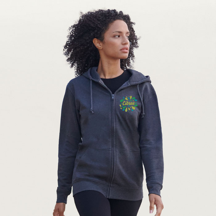 SOL'S CARTER, bluza z kapturem, 80% bawełna - 20% poliester z recyklingu z certyfikatem Grs, wszyte rękawy, cięcie i szycie, ściągacz 1X1 w mankietach i u dołu, kieszeń kangurka, kaptur z podszewką i sznurkiem w tonacji i metalowymi oczkami, zapięcie z przodu na ukryty zamek błyskawiczny, plastikowy zamek błyskawiczny z metalowym ściągaczem w tonacji, półksiężyc z dżerseju i taśma wzmacniająca na karku wewnątrz kołnierza (1) Grey Melange : 73% bawełna / 20% poliester z recyklingu / 7% wiskoza, (2) Charcoal Melange: 60% bawełna / 40% poliester z recyklingu. Informacje na temat dopasowania rozmiarów można znaleźć w tabeli rozmiarów w sekcji dokumentacji produktu.