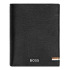 Ten pionowy portfel z klapką i kieszenią na monety jest wykonany ze starannie dobranej, czarnej, teksturowanej skóry. Jest ozdobiony luksusową chromowaną tabliczką z podpisem BOSS i posiada wewnętrzną podszewkę z monogramem. Inną charakterystyczną cechą tej kultowej wersji jest trójkolorowa flaga tekstylna, która zdobi wszystkie przedmioty z tej serii Portfel zawiera: 2 przegrody na waluty 8 miejsc na karty 5 przegródek bocznych 1 miejsce na monety Zgodnie z DNA marki BOSS, jest prosty, funkcjonalny, elegancki i minimalistyczny.